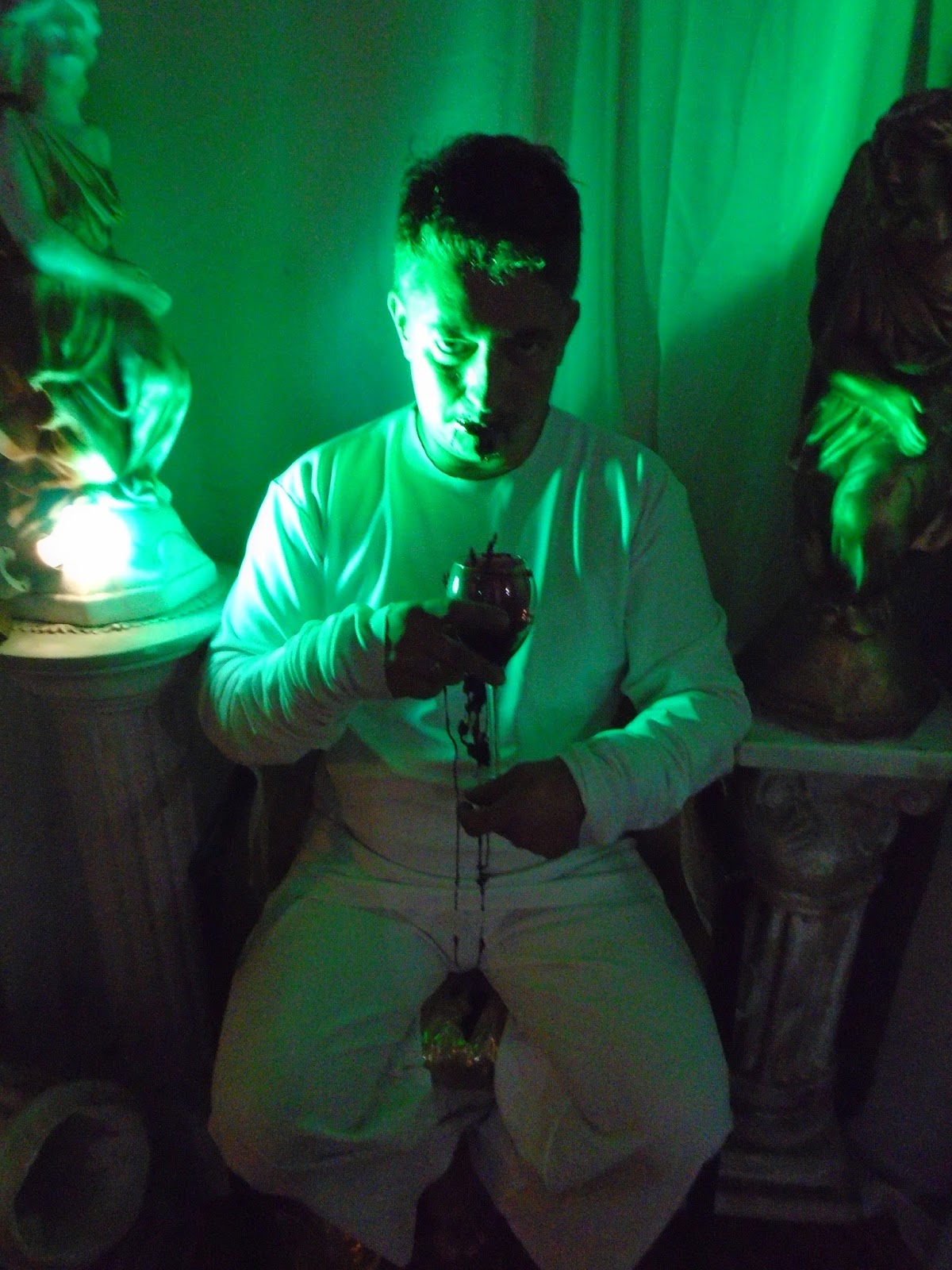 Então chegou 2015... o dinheiro do financiamento já havia acabado e eu acumulado tecidos, figurinos e recibos... Então Drácula surgiu dentro de mim... Um insano, maníaco depressivo que conta sobre crimes que não sabemos ao certo se foram cometidos ou se são apenas desejos ocultos... o texto é o mesmo, apenas adaptado... e parece que sempre havia sido escrito para um ator. As falas se encaixavam, a história possuía uma sequencia lógica... Dizer que é um texto claro seria mentira, pois é sobre um esquizofrênico, que muda de ideia, mas sempre volta ao seu roteiro principal... Os traumas e os motivos pelos quais comete os assassinatos, a briga com a igreja, a ideia do anticristo... A determinação de ser um novo deus.