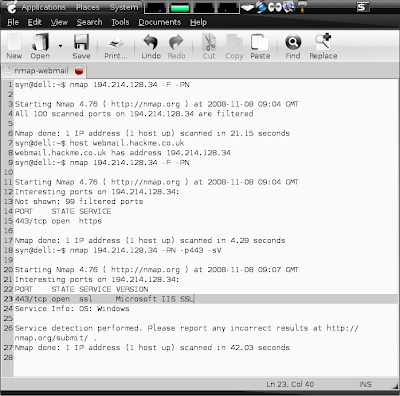 nmap magic dust, I get some very interesting info back. It looks as though my target is using a