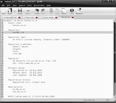 X-StarScan-Version: 5.5.12.14.2; banners=hackme.co.uk,-,- X-Originating-IP: [194.214.128.33] Received: from unknown (HELO file-server.hackme.co.uk) (194.214.128.33) From: postm...@hackme.co.uk To: llena...@hackme.co.uk boundary="9B095B5DSN=_01C8DA36Afile-server.hackme.co.uk" X-DSNContext: 335a7efd - 4523 - 00000001 - 8004546 Message-ID: Subject: Delivery Status Notification (Failure) This is an automatically generated Delivery Status Notification. Delivery to the following recipients failed. llena...@hackme.co.ukOkay, from my bounce email I get to find out that my target is filtering email for spam and viruses, bugger. That reduces my chances of getting some of my attachments through. I do get the name of an internal server though. I also get some