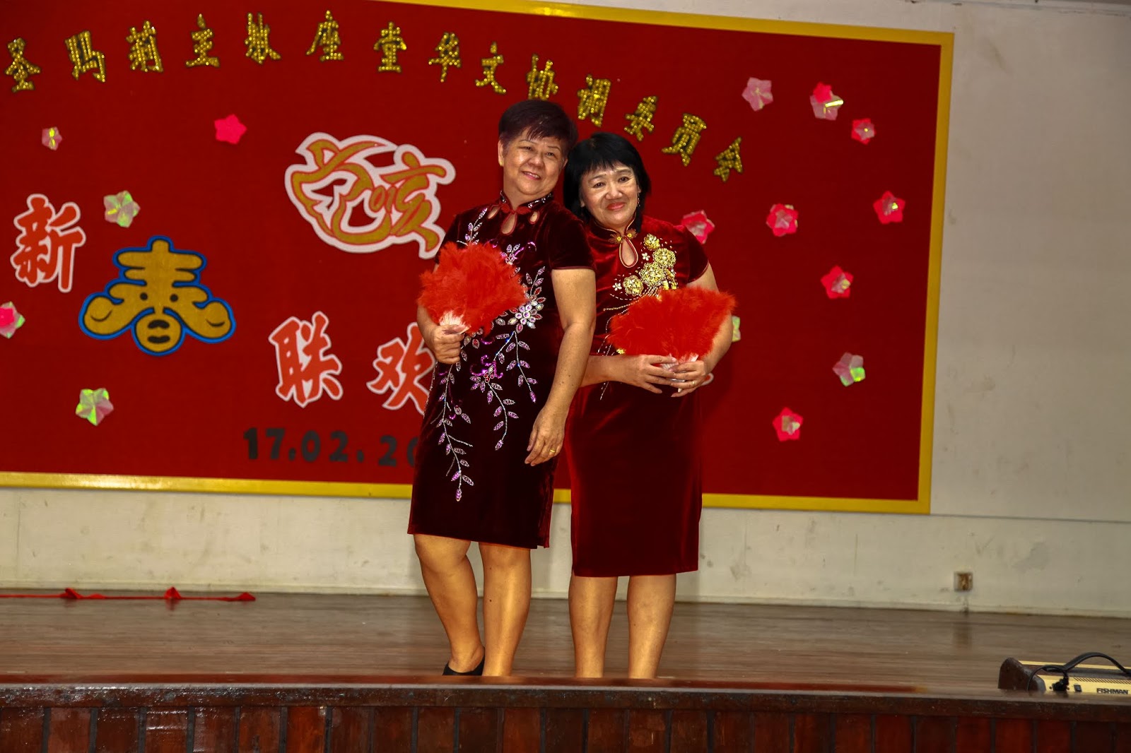 「聖母軍」率先出場呈獻兩首曲子:“迎春花 + 萬事如意”;接著是「聖經班」的“舞動健康慶豐年”(最炫民族風+勇氣棒嘟嘟),雖然在台上的都已不是青春少艾,但“力道”和“氣勢”卻毫不遜色,台下的觀眾們紛紛拍爛手掌,贏得滿堂彩。