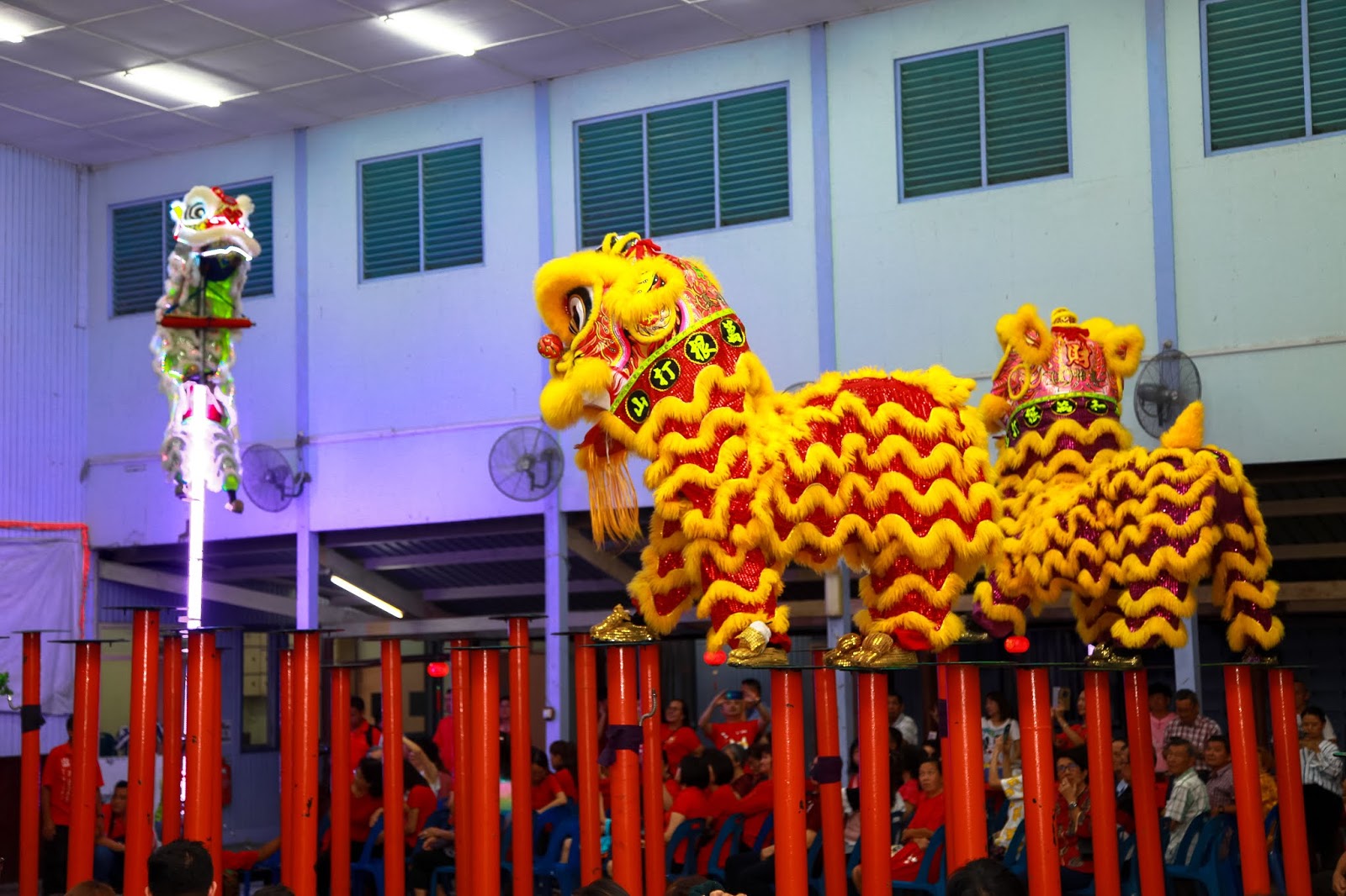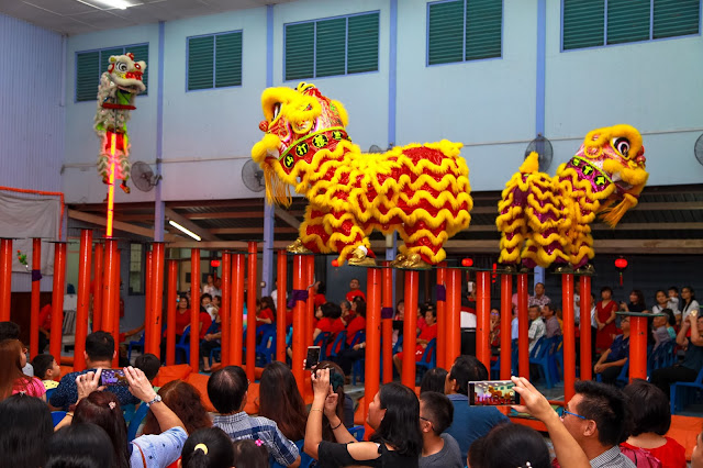 萬和體育會以《雙獅椿上顯神威》為晚會拉開序幕。兩隻醒獅在椿上舞動,另兩隻則爬上高台高掛對聯,他們靈巧且純熟的動作贏得了在場所有人的喝彩與歡呼。觀賞了精湛的舞獅表演後,華協副主席黃士南兄弟致歡迎詞並聯同全體華協理事于台上向所有出席者拜年。