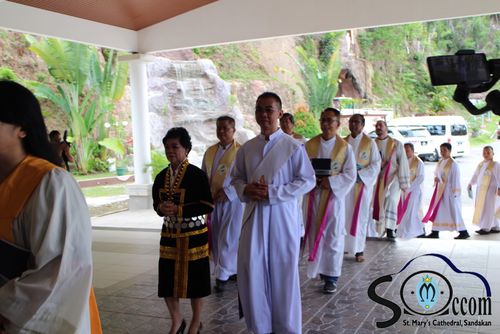 He is the fourth ordained priest in the Sandakan Diocese since its establishment 12 years ago. The solemn and joyful procession began at 4.00pm with the traditional beating of gongs witnessed by some 2000 parishioners, family members and a score of religious from far and near.