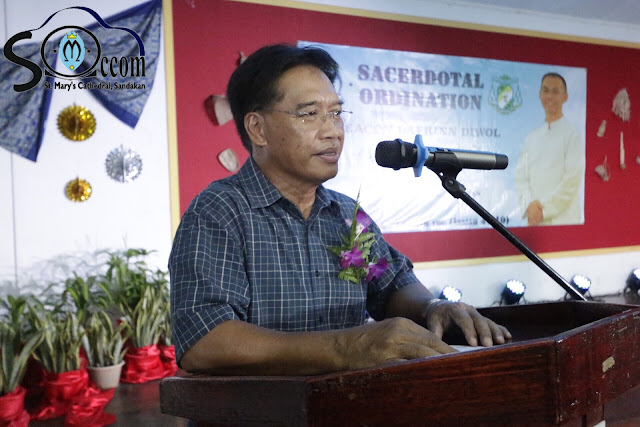 Beliau percaya bahawa semua umat yang hadir mengutarakan rasa syukur kepada Tuhan kerana doa permohonan bagi panggilan untuk mendapatkan seorang paderi di keuskupan Sandakan khasnya di Katedral St. Mary, Sandakan telah dikabulkan apabila salah seorang daripada umatnya telah ditahbiskan menjadi seorang paderi iaitu Rev. Fr. Dafrinn Diwol.