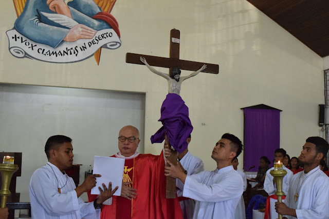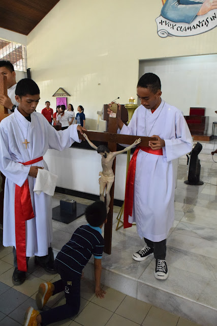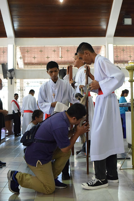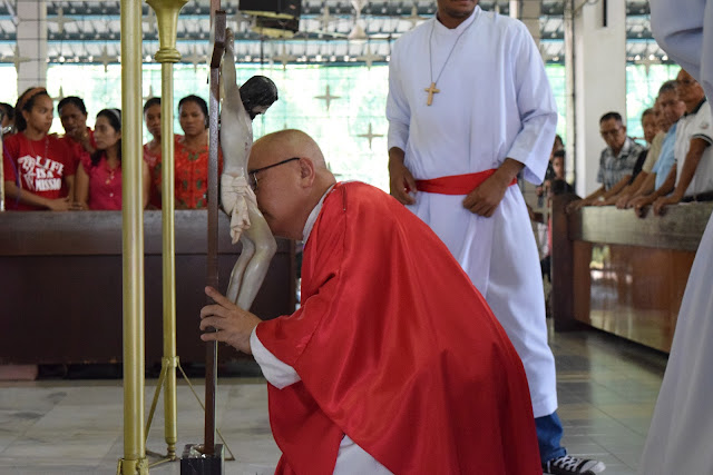 Ibadat tersebut telah dilanjutkan dengan penghormatan salib oleh semua umat yang hadir.