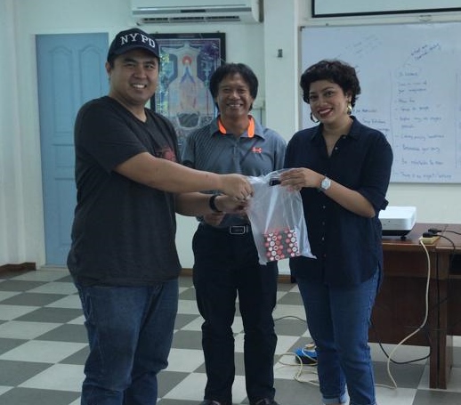 Mr. Leonard, Chairman of Parish Social Communication Commission presents token of appreciation to Ms. Kathlyn witnessed by Mr. Pilis Malim