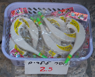 shofars being animal horns blown on Ro’sh hashShanah. The stickers on the horns themselves read “good year”. Whoever created these was clearly not religious. Not only are plastic horns invalid as