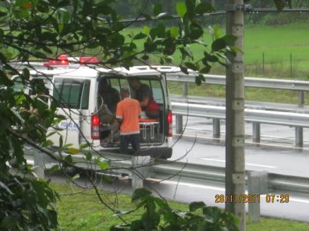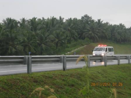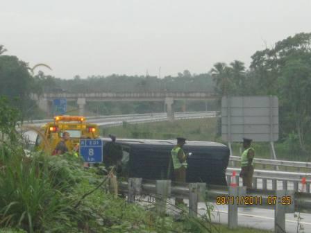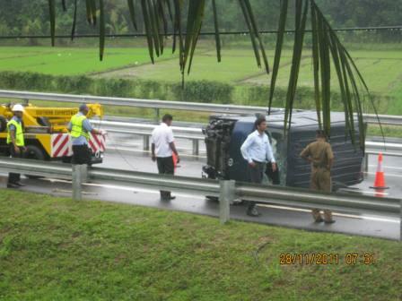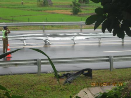 Hi all,Here is images that I took this morning. This van was driving high speed (frankly not more than 120km/hr) and overtaken me around 15 kms before this incident place. It was splashing water to sides and it was very uncomfortable to the vehicles in the back. It was heavy raining this morning from K'gaha to Kottawa, aquaplaning and speed are causing this accident.