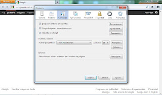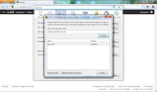 Seleccionamos la pestaña Contenido. En ella tenemos diferenes opciones para configurar pero nosotros necesitamos habilitar las ventanas emergentes para lo cual vamos donde dice: Bloquear ventanas emergentes-----> y seleccionamos Excepciones.