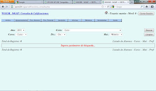 Esta pantalla nos muestra el menú que tenemos para acceder a cargar notas que sería Proc.Personal/Calificaciones hacemos click y se nos muestra la siguiente pantalla: