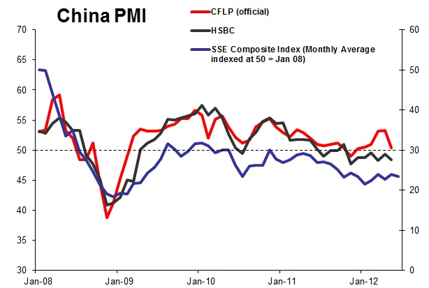 The first bits of data that come out of China each month are the PMI (a measure of manufacturing) and the Soufun 100 Index (a measure of house prices). The housing sector and manufacturing sector remain critical to the near term prospects of China's overall economy and macro policy positioning. So with these two data points you can get a leading view on how China's economy. And what do they say?