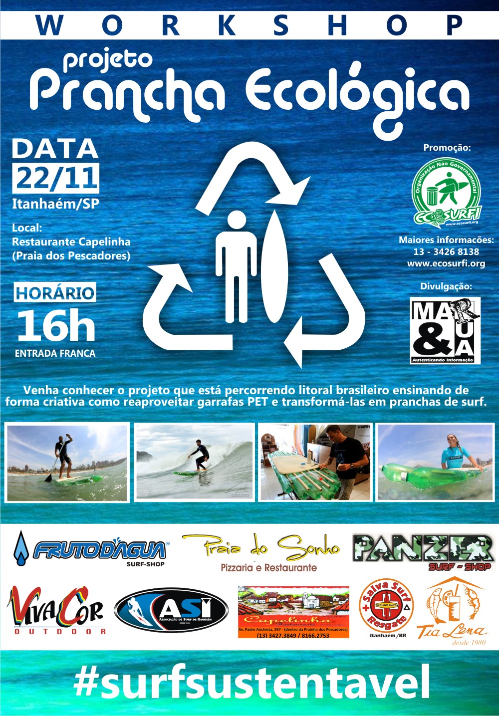 Na cidade a Ecosurfi está promovendo o workshop sobre a prancha ecológica com o objetivo de mostrar a comunidade do surf itanhaense uma maneira simples e prática de ajudar na proteção do meio ambiente e trocar conhecimentos sobre iniciativas sustentáveis.