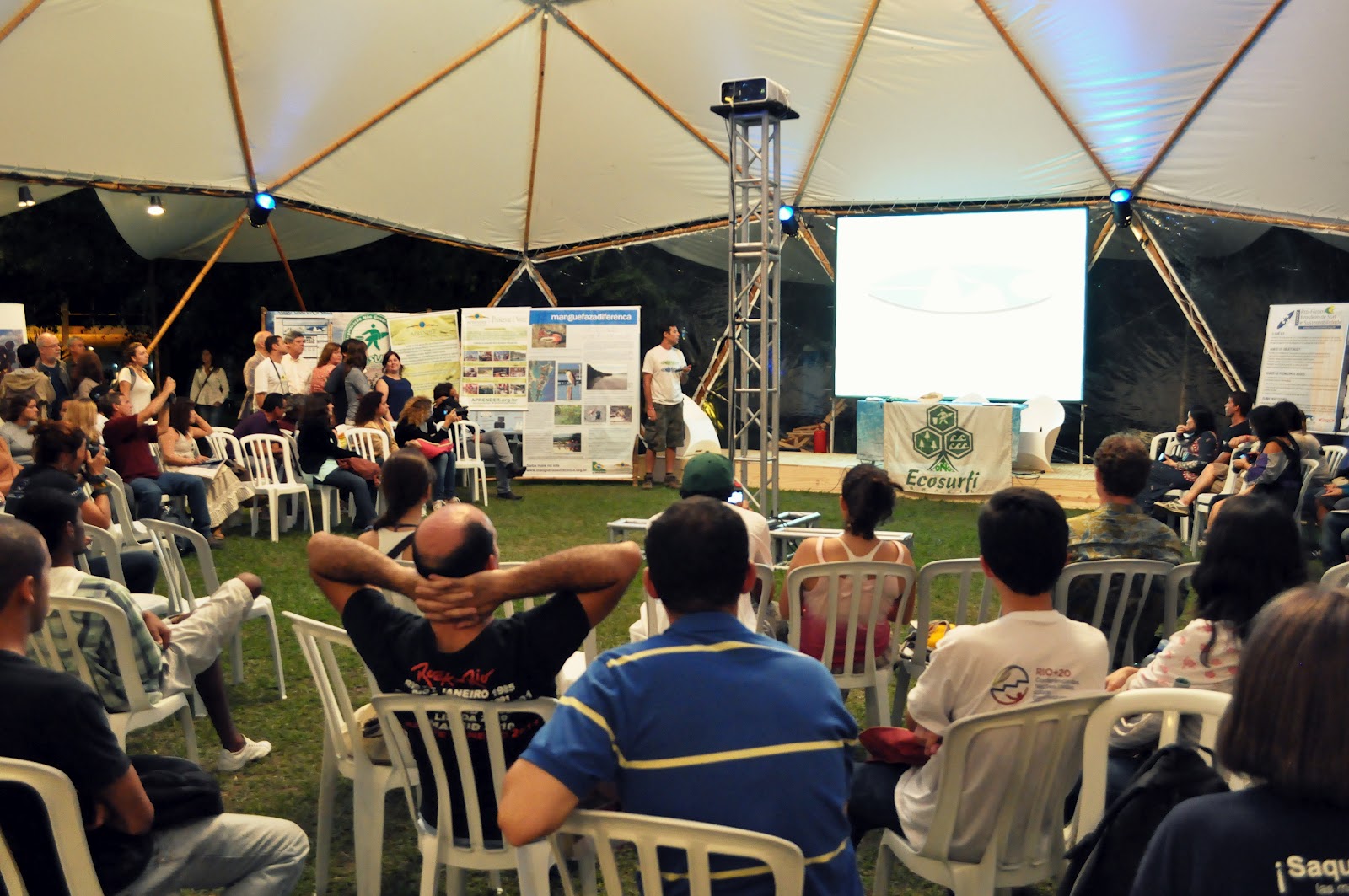 O lançamento do Fórum Brasileiro de Surf e Sustentabilidade aconteceu no último dia 20 de junho no Pavilhão Azul da Cúpula dos Povos, com uma cerimônia de mistura das areias trazidas de praias de todo Brasil, que reuniu cerca de 200 pessoas. A celebração serviu para ligar os diferentes litorais num mesmo ambiente, mostrando que os surfistas podem se unir por praias e zonas costeiras conservadas.