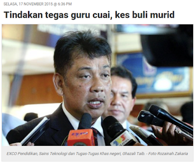 EXCO Pendidikan, Sains Teknologi dan Tugas-Tugas Khas negeri, Ghazali Taib berkata pihaknya akan mengikut prosedur operasi standard (SOP) yang ditetapkan Kementerian Pendidikan di mana guru sekolah berkenaan turut disiasat. "Kita akan siasat jika ada kecuaian guru dan guru besar sekolah itu. Kita akan lihat kenapa tiada ustaz atau ustazah mengawasi keadaan sehingga terjadinya insiden berkenaan," katanya ketika diminta mengulas video buli yang tersebar di laman sosial sejak dua hari lepas.