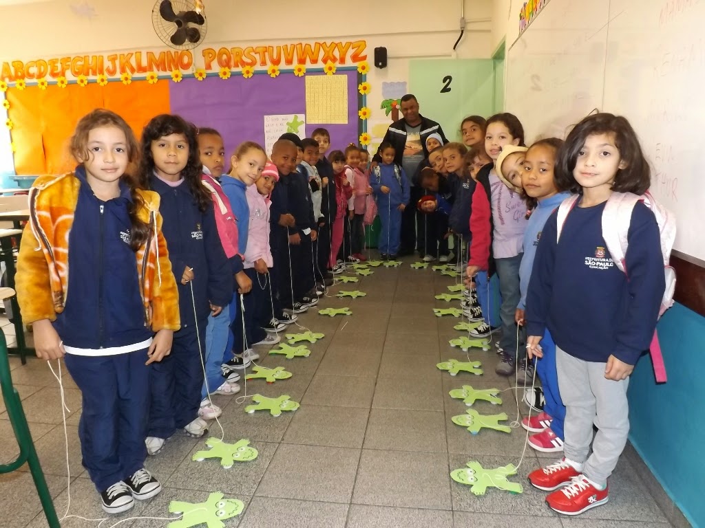 O professor Rubens ensaiou com os alunos do 1º ano B, a Cantiga "O Sapo". Acompanhados do próprio sapo!