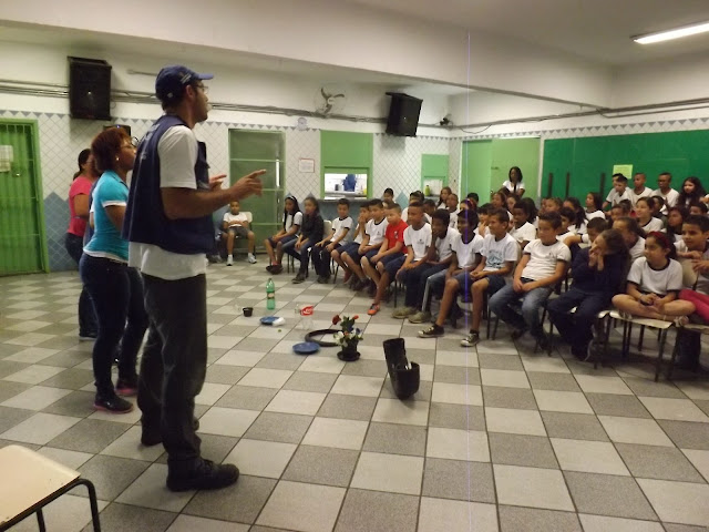 A equipe de teatro da SUVIS - Supervisões de Vigilância em Saúde apresentou, ontem à tarde, no pátio da escola, uma peça de teatro educativo sobre formas de prevenção da Dengue. O evento atendeu alunos do 3º e dos 5ºs anos A e B.