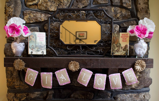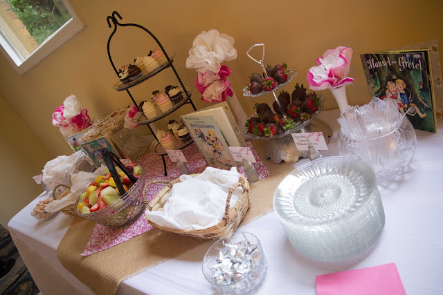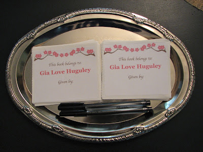 This was my very first baby shower to plan, and I had so much fun! Gia's shower was a Storybook Baby Shower, because at the time we didn't know when she would be coming home. We weren't sure what size clothes, shoes, etc she would need, but we knew books would be a "perfect fit" no matter how many weeks passed before their travel call. Plus, her mommy Malerie is a teacher who LOVES books! So we decided to stock her bookshelves. (This is a great shower idea for any adoptive moms who are in the "waiting" process. You can't go wrong buying books!)