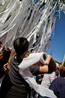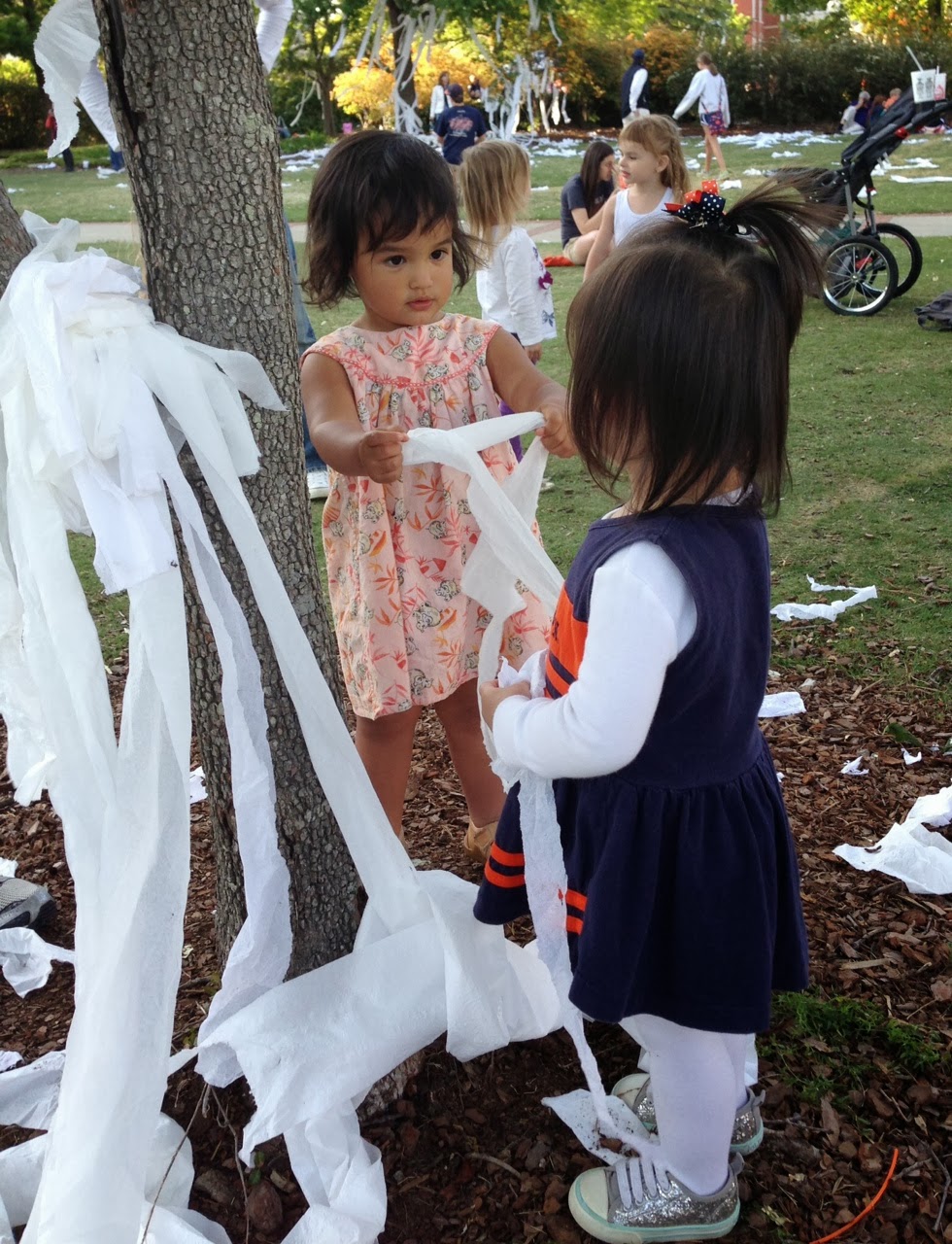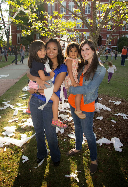 We love the Huguleys and I was really glad that their little girl was home in time for them to share the Toomer's tradition with. We laughed and joked about what must be going on in her little head. I'm sure seeing all that toilet paper everywhere was really a strange sight to her!
