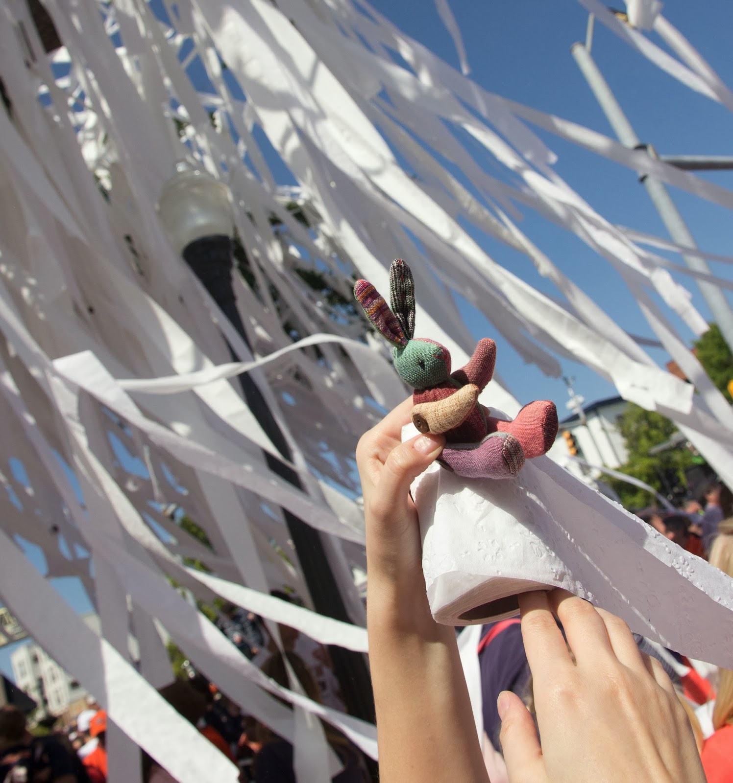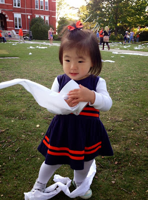 There were a couple of people who asked what the bunny was about (as I'm sure we looked strange!) and they were super supportive and kind when we explained it to them. But after a couple of questions, I could tell my emotions were on edge. I began to feel the sadness set in, and the lump in my throat form. I began to feel even more angry that some hateful Alabama fan had stolen this tradition from me and my little girl. I began to feel angry that adoption takes so long and she wasn't already home. And as I looked around at all the parents with their little girls in their little Auburn cheerleader outfits - sharing this tradition for the first and last time - I felt the tears sting my eyes.