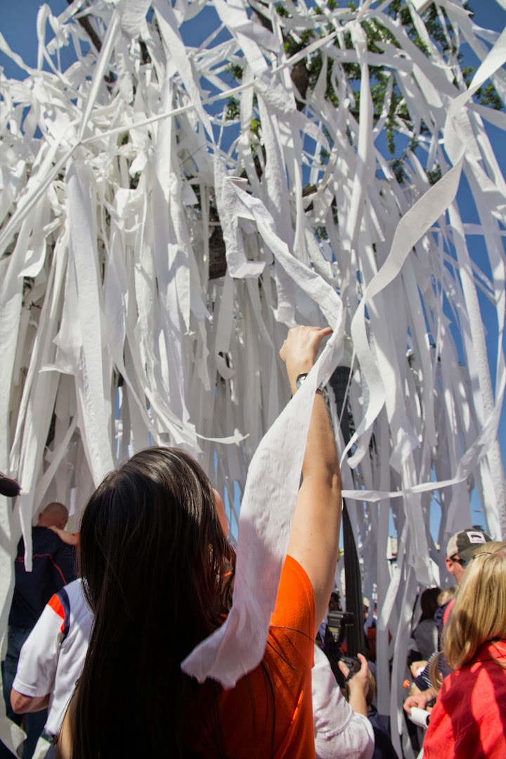 I knew it was going to be an emotional day. I'm sure there are people reading right now who think this is silly.... and to them, I would say, "you just don't understand". Our Toomer's Oaks were more than just "something we roll" to celebrate football games. They were the beautiful trees arching over the official entrance of the University - the corner where our campus meets the city. They were the trees we celebrated football wins under, yes, but we also celebrated graduations and wedding days and elections beneath their branches. There are men who kissed their wife for the first time under those trees... and others who decided that spot would be the perfect place to get engaged. Their branches hold so many precious memories for the Auburn Family.