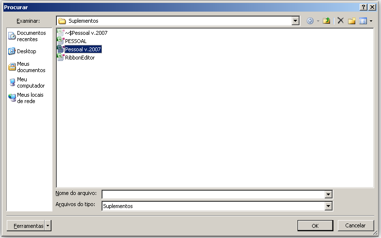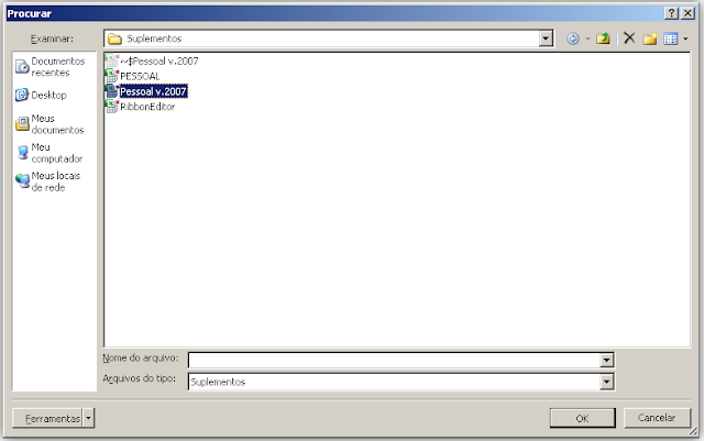 Conforme vemos na figura abaixo, procuramos o arquivo (Pessoal v.2007), selecionamos e clicamos em 'OK'.
