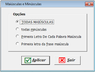 A figura ao lado é um "Userform" com opções (macros) para que possamos aplicar maiúscula e/ou minúscula ao texto de nossa planilha.