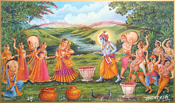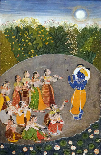 This is the first incident of Raas Leela, where a simple joyful mingling of people rose to a transcendental state. The word “raas” literally means “juice,” but it can also indicate passion. So this was the dance of passion. The fragrance of this dance spread. People came to know that on full moon nights at midnight, this dance happened, and the numbers of those who participated increased.