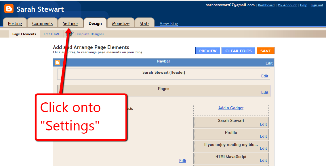 The best way to know when people have left comments on your blog is to set your blog so that you get an email every time someone leaves a comment. If you have a Blogger blog, go the your dashboard and click onto "Settings".