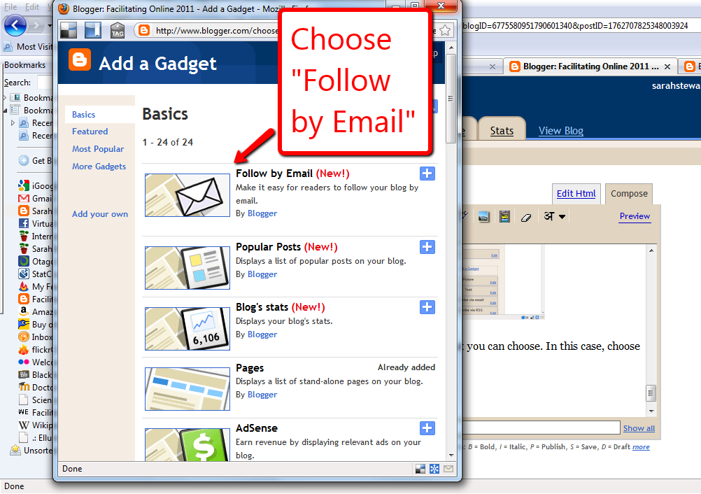 Another window will appear with a number of gadgets that you can choose. In this case, choose "Follow by Email" and then click onto "Save".