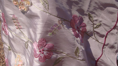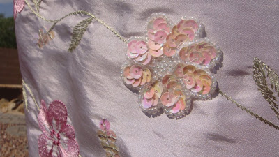 Lavender shawl/wrap with embroidered vines and flowers. Has sequins sewn on, and 3d flowers attached.