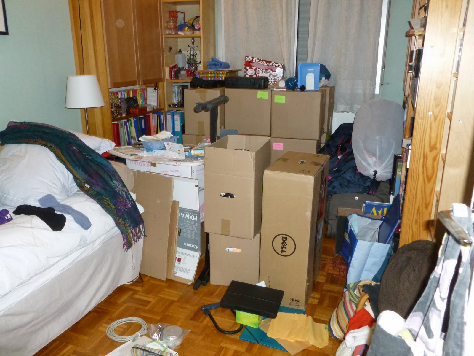 J'avais attendu d'avoir trouvé un appartement pour commencer à demander des devis pour déménager. Je n'avais pas tant de choses à bouger en Angleterre : j'avais vendu ou donné la plupart de mes meubles de Montpellier, et tout laissé à Vancouver, d'où je n'avais rapporté que des valises. Après avoir mis toutes mes affaires dans des cartons, le volume à bouger était, à la louche, de 4 m3... et tenait (plus ou moins) dans ma chambre parisienne. Bon, il y avait de mon bordel dans un peu toutes les pièces, mais disons que le gros était dans ma chambre.