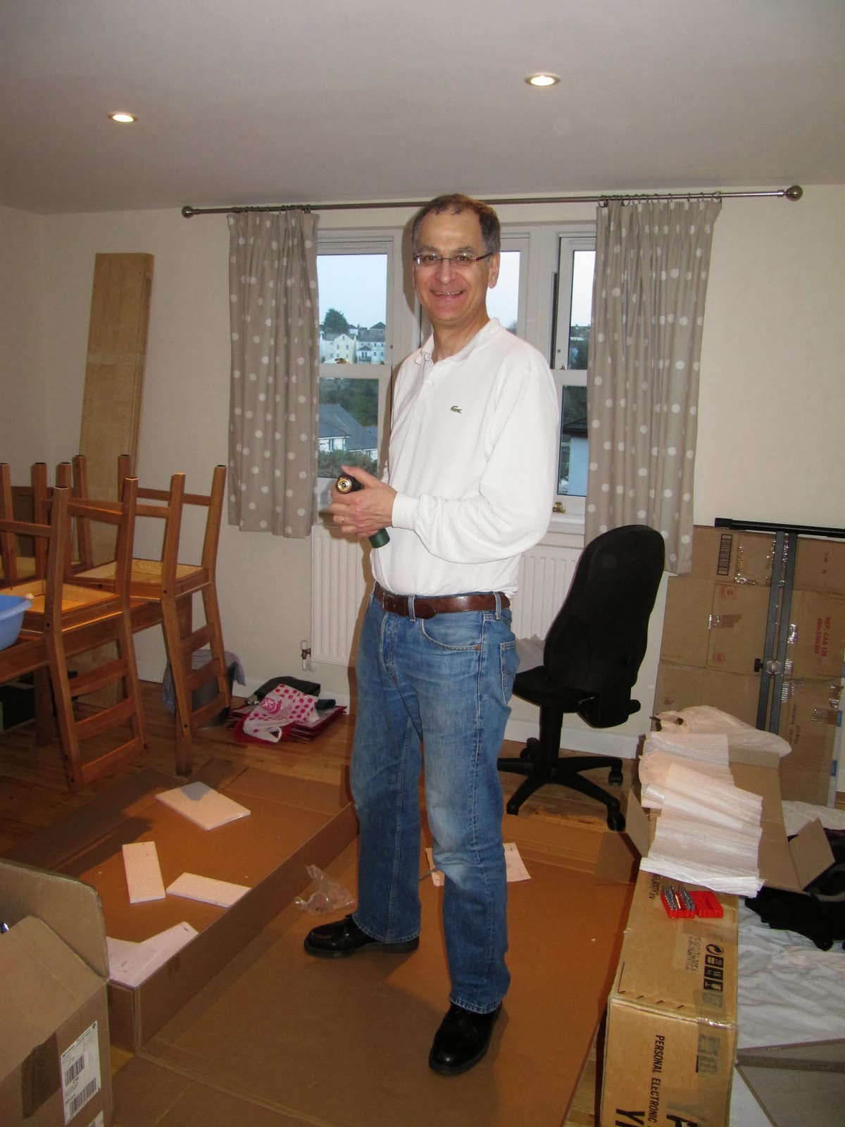 fish and chips, les déménageurs-pas-bretons furent efficaces, domptant les armoires récalcitrantes et les plinthes plus hautes que les standards IKEA. La perceuse-visseuse fit son office et les placards de cuisine se remplirent. On n'eut qu'à déplorer le décès du robot multi-fonction, mort de chagrin d'avoir été laissé à l'abandon pendant près de trois ans (si quelqu'un sait où/comment faire réparer un robot Seb en France, je prends).