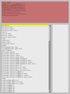 'utf8' generates the image below. These fonts seem to work but its a sparse list. The 'Select' button produces strange names on the console. 'Select' 'fixed' produces: