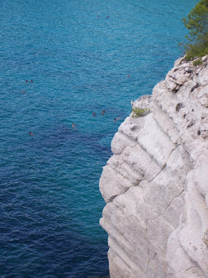 La gente ensayaba clavados desde una antigua plataforma de hormigón, ubicada por detrás del acantilado. Luego de caer de una docena de metros, se quedaban flotando en el mar.