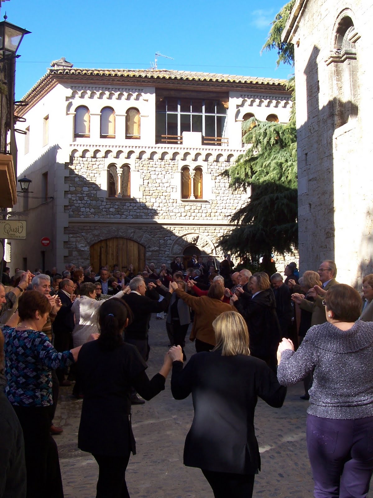 Todo el pueblo estaba bailando sardana junto a la iglesia. La sardana, que es un baile típico catalán, tiene dos pasos básicos (el corto y el largo), y no parece tener mucha dificultad.