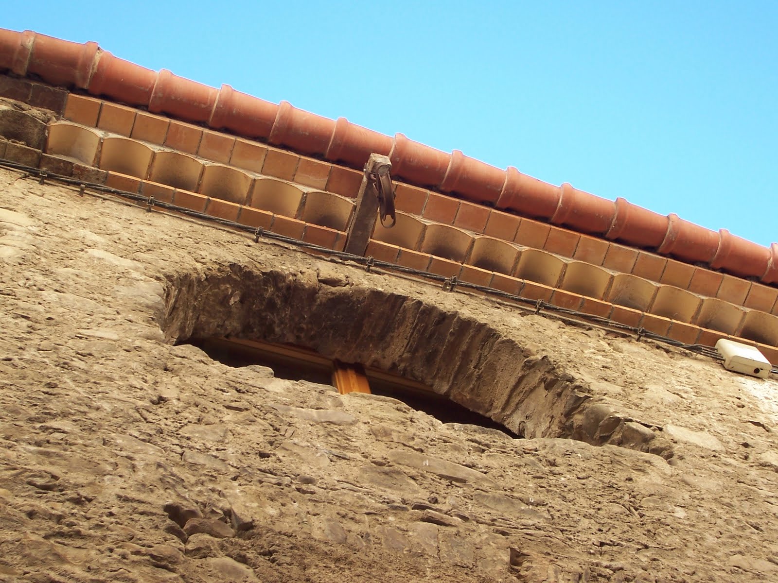 Después de hacer un poco de alpinismo hasta lograrme sentar en la silla de la foto anterior, encontré esta vieja polea, ubicada en la tercera planta de una casa. La ventana no tiene desperdicio.