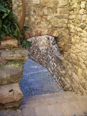 Este tal vez sea el Árbol Blanco de la ciudad amurallada. A sus pies habían colocado unas placas con un poema en dos versiones: catalán actual y catalán antiguo. No entendí mucho del último.