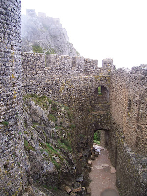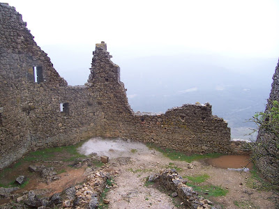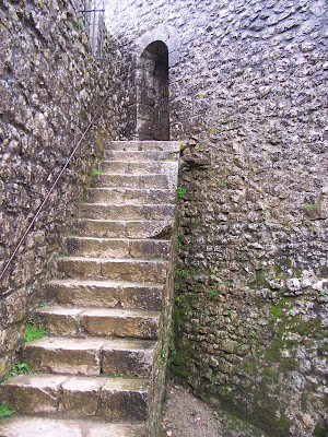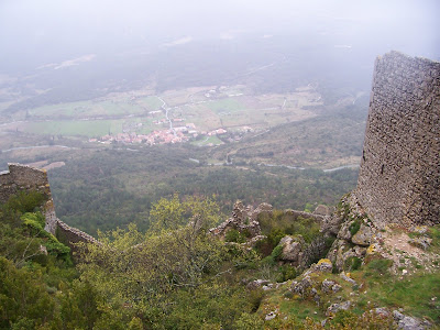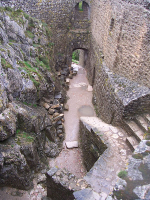 A mí, si fuera soldado medieval, esta vista me desalentaría un poco. Ahora entiendo por qué a algunos castillos era mejor sitiarlos. Además, la escalera de acceso, llamada la "Escalera de San Luis", está construida justo sobre el precipicio, de manera que desde arriba te podían hacer caer fácilmente. A mí el viento amenazaba hacerme lo mismo.