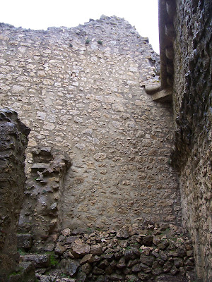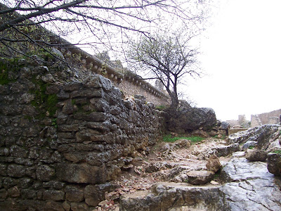 Me dirigí a la parte superior. En el camino se conservaba algún resto de muralla. El hielo me confirmaba que, pese a ser primavera, allá arriba estaba bajo cero.