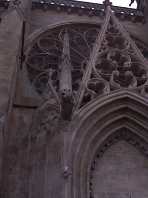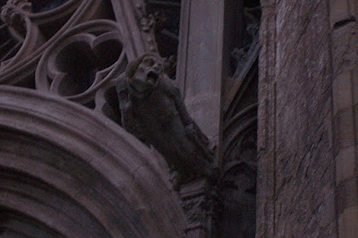 Caminamos hasta otra iglesia. Las fotos no son buenas, pero quiero compensar la falta de gárgolas en mis notas, esas figuras fálicas que pretendían atemorizar a los creyentes.