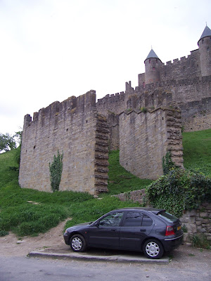 Carcassonne. Primero dimos una vuelta por su periferia, la ciudad nueva por así decirlo, donde se alzaba esta extraña construcción, abandonada en medio de un