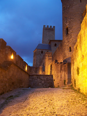 Como ya teníamos hambre, y los restaurantes franceses son carísimos (y más aún dentro de un castillo), comenzamos nuestra retirada. Estas son las murallas exteriores, ahora iluminadas: