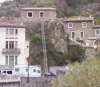 Cucugnan, el cual tiene un castillo encima. Pero lo que primero me llamó la atención fue una escalera larguísima, única forma de acceso a una casa en obras.