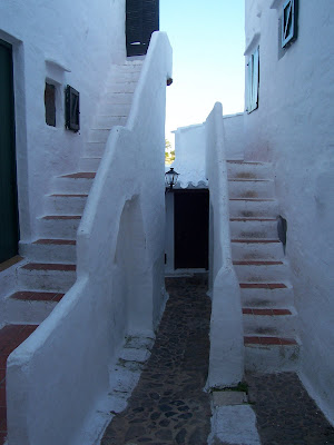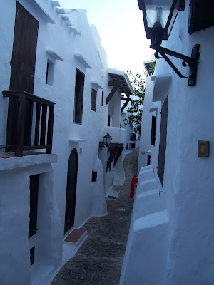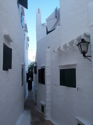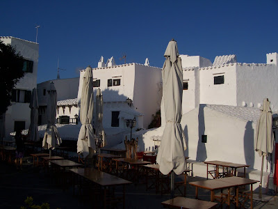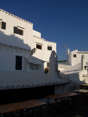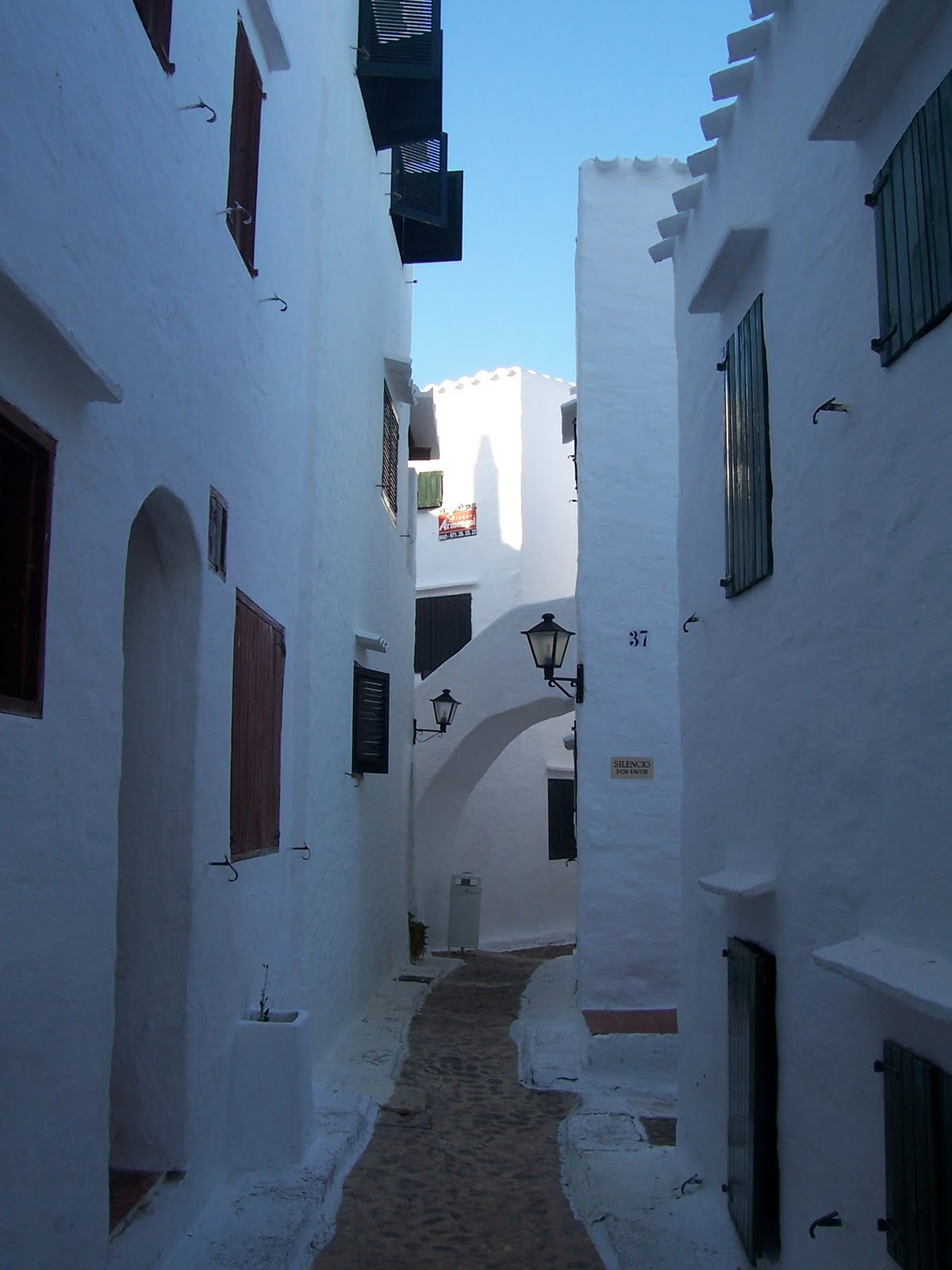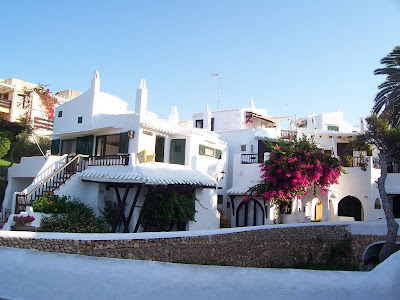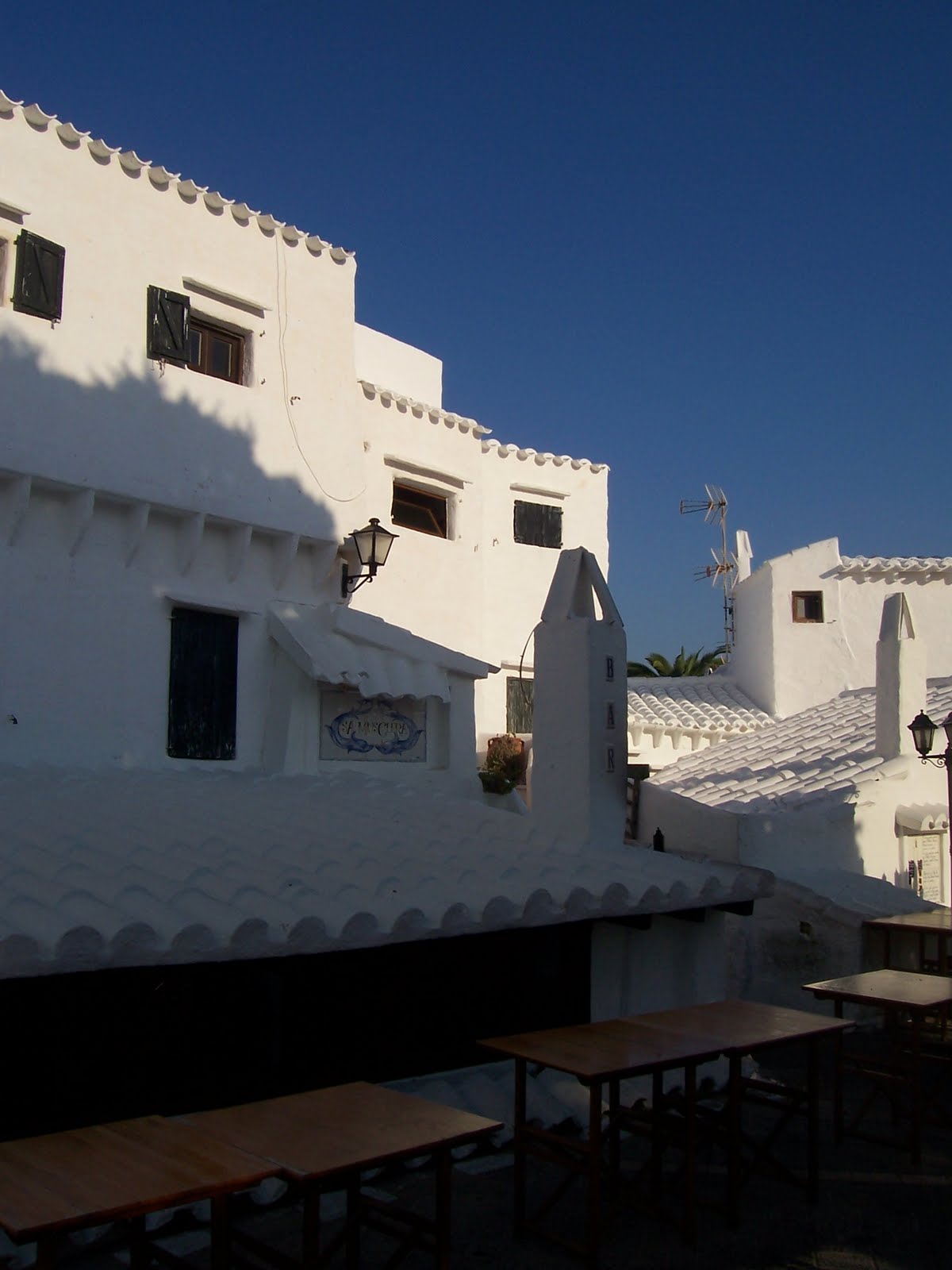 Llegamos por la mañana al aeropuerto de Mahón, ciudad famosa por ser el origen de la mayonesa (mahonesa en muchos sitios), por mucho que les duela a los franceses. Como nuestra guía (mi novia) nos explicó que en la ciudad no había mucho que ver, recogimos el coche alquilado y bajamos al pueblo de Binibèquer (Binibeca en castellano). Eran más o menos las 9 de la mañana y el pueblo aún dormía.
