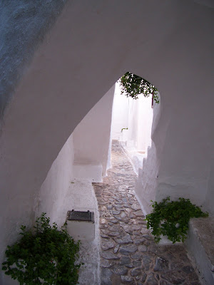 En realidad no hay mucho más que decir del pueblo, salvo que es precioso. Sus paredes blancas (supongo que para atenuar el calor) reflejaban una luz azulada durante esa mañana veraniega.