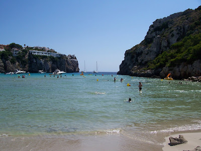 Después de recorrer Binibèquer y desayunar algo, fuimos a Cala n'Porter, que tenía muchos turistas del norte de Europa, sobre todo familias, y en las que hicimos un poco de snorkel. El agua estaba caliente, la única contra era que había tal vez demasiada gente y pocos peces. El cambio de color en el agua (más turquesa dentro) avisaba que allí la temperatura del agua bajaba mucho.