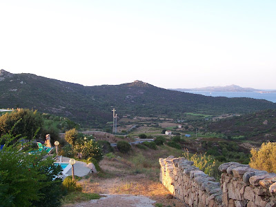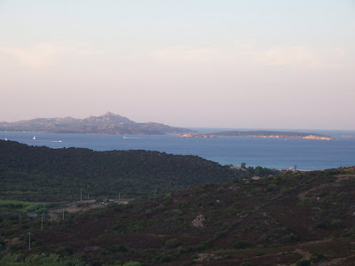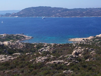Caprera, unida por puente. Comimos en un parador entre abejas, y al salir conduje yo (aunque no tenĂa permiso). Por la falta de costumbre, al salir a la carretera marcha atrás llenĂ© a medio parador de tierra, pero para cuando se disipĂł la nube de polvo ya nos habĂamos esfumado.