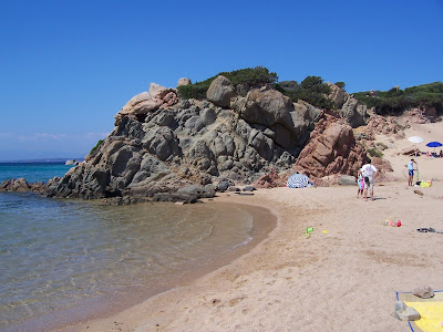 Porto Rotondo, una penĂnsula con dos playas a cada lado de la carretera. Una estaba vacĂa, porque habĂa algas y olĂa mal, y la otra estaba llena, con arena blanca, aguas transparentes y pececitos visibles desde lejos. Esta es la playita de las algas: