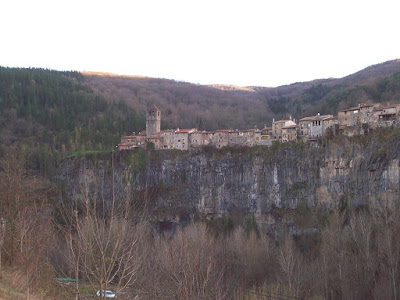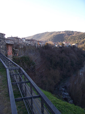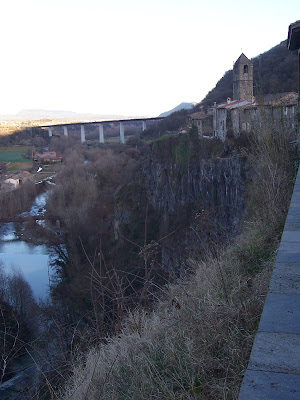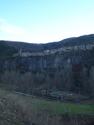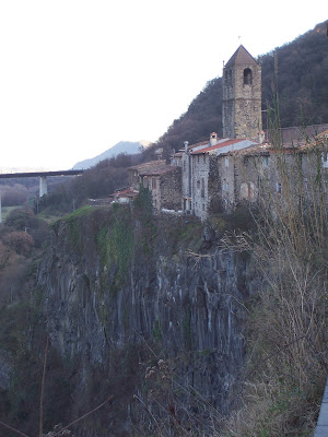 Como en invierno los días son cortos, salimos pronto rumbo a Olot y sus volcanes. Pero antes, un par de panorámicas de este pueblo, que me pareció alucinante y único. Lástima que las fotos no sean mejores, para mí es uno de los lugares más impactantes que haya visto.