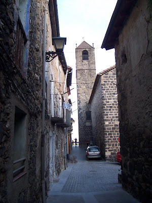 Besalú, seguimos en coche hasta el pueblo cercano de Castellfollit de la Roca, donde nos habían recomendado comer en un restaurant muy "campesino". Como siempre, hicimos una reserva antes, ya que la técnica marplatense de presentarse en el restaurante y hacer cola no funciona demasiado bien en Cataluña (hasta el sitio más inesperado puede estar lleno por horas). Después de comer unos platos muy suculentos de comida catalana, caminamos un rato por el pueblo.