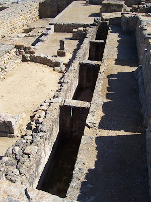 Termino con la historia de la ciudad. Después de que Roma conquistara toda Iberia, en el I d.C., Ampurias se fue quedando atrás frente a Tarraco (Tarragona, convertida en capital) y Barcino (Barcelona). En el siglo III la población griega se mudó a un sitio cercano mejor fortificado, y su área se convirtió en un cementerio. La población romana pervivió hasta una invasión normanda del siglo IX, y aunque Ampurias sería brevemente una capital de Carlomagno, una invasión árabe la destruyó en el 935, y su población se trasladó a Castelló de Empúries, un pueblo medieval cercano del cual no tengo fotos.